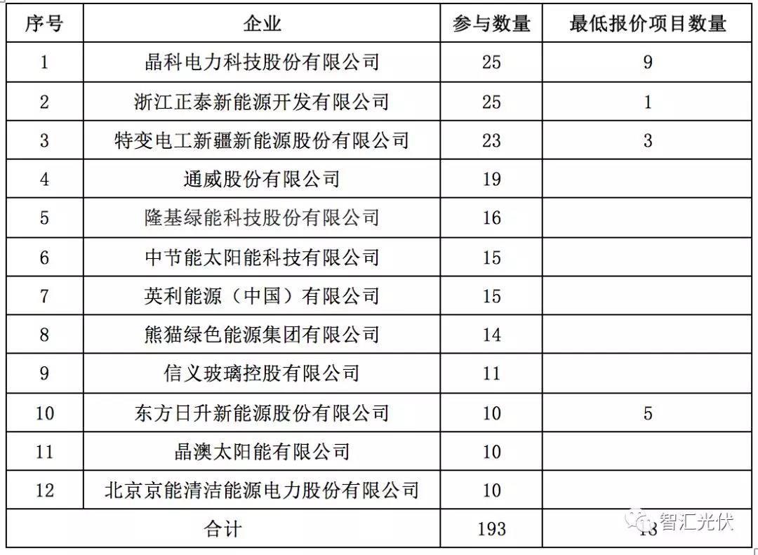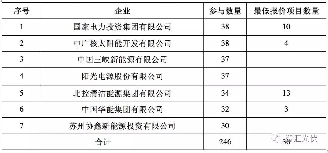除了投標(biāo)數(shù)量多,38個(gè)項(xiàng)目的中標(biāo)企業(yè),第一梯隊(duì)可能會占據(jù)一半。根據(jù)統(tǒng)計(jì),38個(gè)項(xiàng)目中,第一梯隊(duì)的企業(yè)在30個(gè)項(xiàng)目中報(bào)出最低最低電價(jià)。