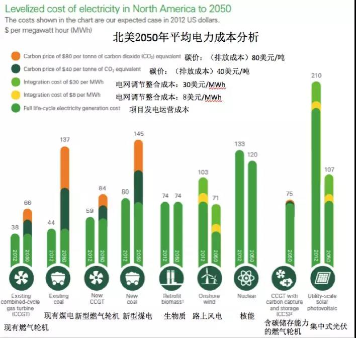 據(jù)BP 預(yù)測(cè)(圖三),2050年北美陸上風(fēng)電的平均電力成本有望降至71美元/MWh,成為僅次于傳統(tǒng)燃?xì)廨啓C(jī)的廉價(jià)電力來(lái)源。