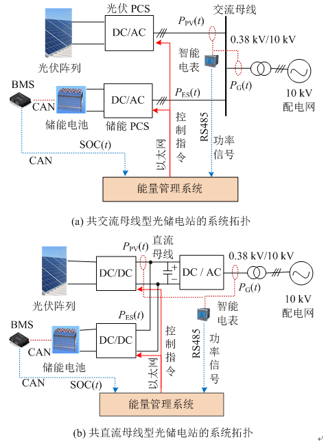 針對(duì)圖4所示的2種光儲(chǔ)電站拓?fù)?本文所提策略均適用,存在的差別主要是:數(shù)據(jù)采集位置的不同、控制指令下發(fā)和執(zhí)行的對(duì)象不同。然而,這兩點(diǎn)區(qū)別并不會(huì)影響所提策略的有效性。