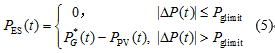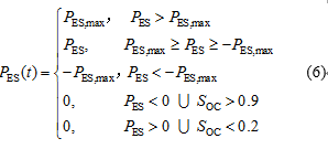 {?PES,max≤PES(t)≤PES,max0.2≤SOC(t)≤0.9{?PES,max≤PES(t)≤PES,max0.2≤SOC(t)≤0.9 (4)