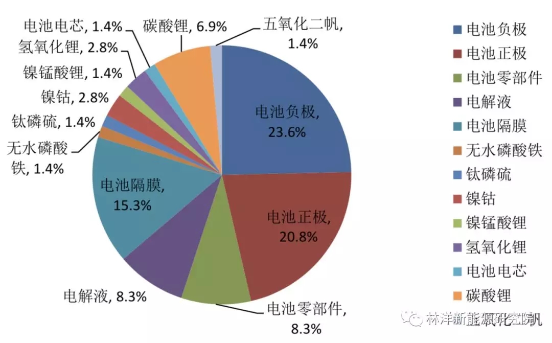 在電池材料項(xiàng)目中與原材料有關(guān)的項(xiàng)目占到了項(xiàng)目總數(shù)的35.8%,其中電池負(fù)極、電池正極和電池隔膜項(xiàng)目占比較高。另外,碳酸鋰、無水硫酸鐵、鎳鈷、鎳錳酸鋰、氫氧化鋰、五氧化二帆等電池原料項(xiàng)目也有所涉及。