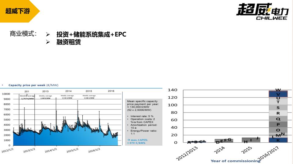 下面幾個圖是我們在做德國項目的信息分享。這個藍(lán)色的線是波動的,市場價格,尤其是儲能去并網(wǎng)的市場價格是市場波動的曲線,我們現(xiàn)在相對來說還是固定的。因為市場機(jī)制的形成,德國到2017年有了市場機(jī)制之后,儲能的爆發(fā)是跳躍式的爆發(fā)。