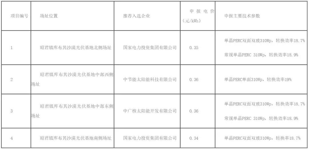 根據(jù)達拉特光伏發(fā)電應(yīng)用領(lǐng)跑基地優(yōu)選工作方案,達拉特旗人民政府委托水電水利規(guī)劃設(shè)計總院組織開展達拉特光伏發(fā)電應(yīng)用領(lǐng)跑基地競爭優(yōu)選工作,現(xiàn)將基地內(nèi)各項目排名第一的推薦投資企業(yè)評優(yōu)結(jié)果公示如下: