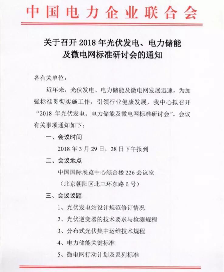 為加強(qiáng)標(biāo)準(zhǔn)貫徹實(shí)施工作,引領(lǐng)光伏、儲(chǔ)能和微電網(wǎng)行業(yè)健康發(fā)展,由中國(guó)電力企業(yè)聯(lián)合會(huì)標(biāo)準(zhǔn)化管理中心主辦,光伏們、中國(guó)儲(chǔ)能網(wǎng)、北京泰格爾展覽有限公司承辦的 “2018年光伏發(fā)電、電力儲(chǔ)能及微電網(wǎng)標(biāo)準(zhǔn)研討會(huì)”將于3月29日在北京召開(kāi)。點(diǎn)擊文末“閱讀原文”即可報(bào)名參加。