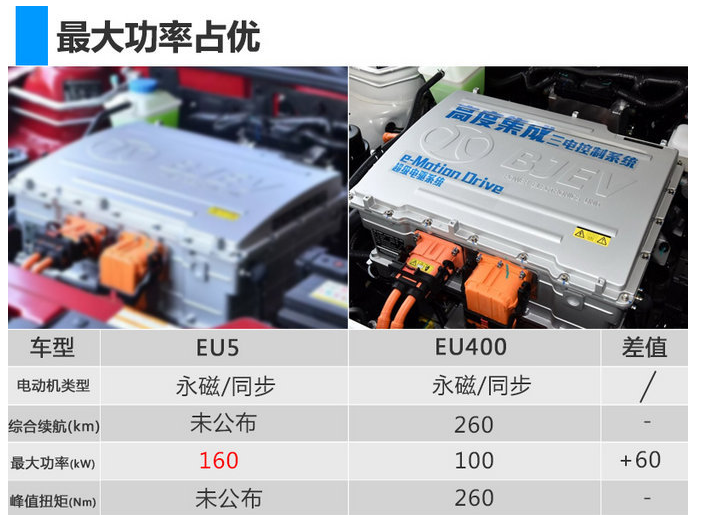 根據(jù)國家工信部公布的信息,北汽新能源EU5搭載代號為TZ220XS560的永磁同步電動機和三元鋰離子電池組,并擁有北汽新能源超級電驅技術e-Motion Drive。新車電動機最大功率達160kW,超過現(xiàn)款EU400(最大功率100kW),峰值扭矩以及續(xù)航里程等參數(shù)暫未公布。