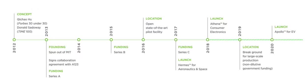 SolidEnergy Systems是美國麻省理工大學(xué)能源實(shí)驗(yàn)室脫胎出來的一家材料科技公司,成立于2012年,創(chuàng)始人胡啟朝當(dāng)時(shí)師從世界著名的電池專家Donald Sadoway,后者的電池項(xiàng)目曾得到比爾·蓋茨的支持。