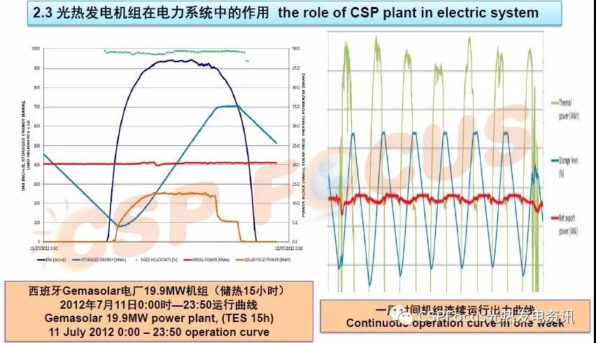 這張圖大家都熟悉,西班牙Gemasolar光熱電站,由于有儲(chǔ)熱系統(tǒng),電力輸出不會(huì)受到光照變化強(qiáng)度影響,一周可以連續(xù)穩(wěn)定的保持電力輸出。