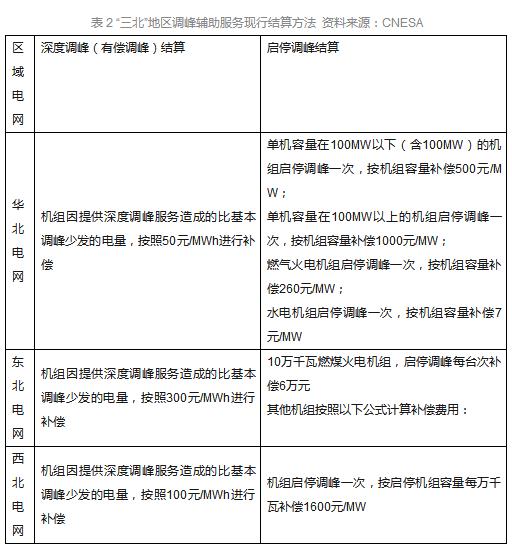 《關(guān)于促進(jìn)電儲能參與“三北”地區(qū)電力輔助服務(wù)補(bǔ)償(市場)機(jī)制試點(diǎn)工作的通知》已經(jīng)允許儲能參與電力輔助服務(wù),但相關(guān)的結(jié)算機(jī)制并未確定。在現(xiàn)行主要以火電機(jī)組參與的電力輔助服務(wù)市場中,“三北”地區(qū)調(diào)峰的結(jié)算方式如下: