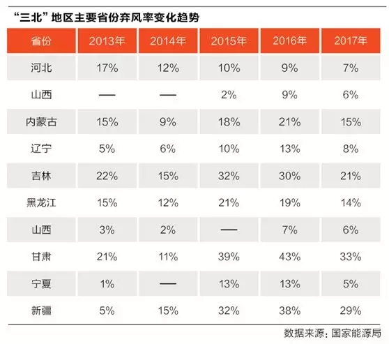 國家能源局披露數(shù)據(jù)顯示,2017年,全國棄風(fēng)電量和棄風(fēng)率實(shí)現(xiàn)“雙降”:全國風(fēng)電棄風(fēng)電量同比減少78億千瓦時,棄風(fēng)率同比下降5.2個百分點(diǎn),西北地區(qū)棄風(fēng)限電持續(xù)改善,消納能力明顯提高?!凹t六省”除新疆、甘肅外,棄風(fēng)率均已低于20%的紅色預(yù)警線,其中甘肅棄風(fēng)率下降幅度最為明顯,達(dá)到10個百分點(diǎn)。其余五省也有不錯的改善成效,棄風(fēng)率下降幅度均達(dá)5%左右。