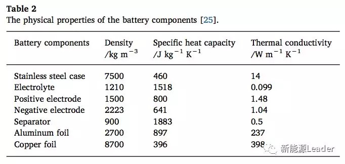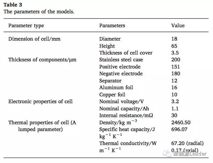 Quan Xia采用了A123的LiFePO4電池對上述模型進行了驗證,電池組采用了3并5串的結(jié)構(gòu),電池組的一些熱特性參數(shù)如下表2所示,模型的參數(shù)如下表3所示,模型的邊界條件如下表4所示。