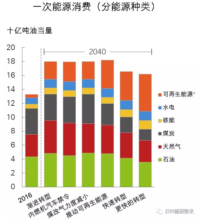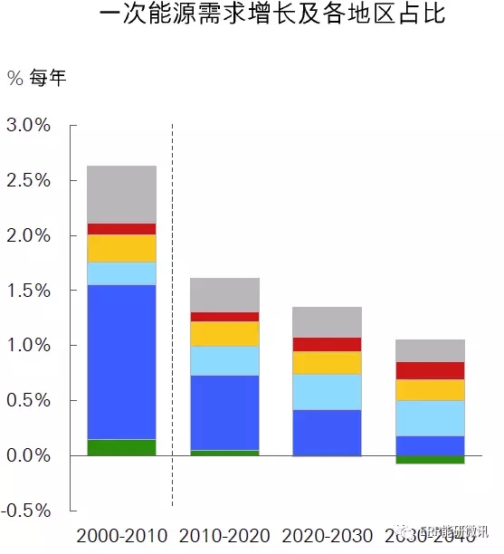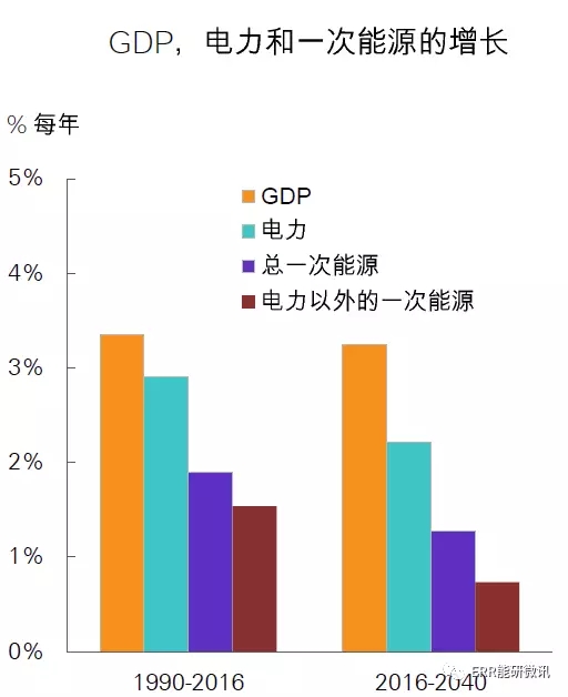 可再生能源的增長在能源來源增長中占比最大,達(dá)40%。2040年的能源結(jié)構(gòu)多元化達(dá)到頂峰。