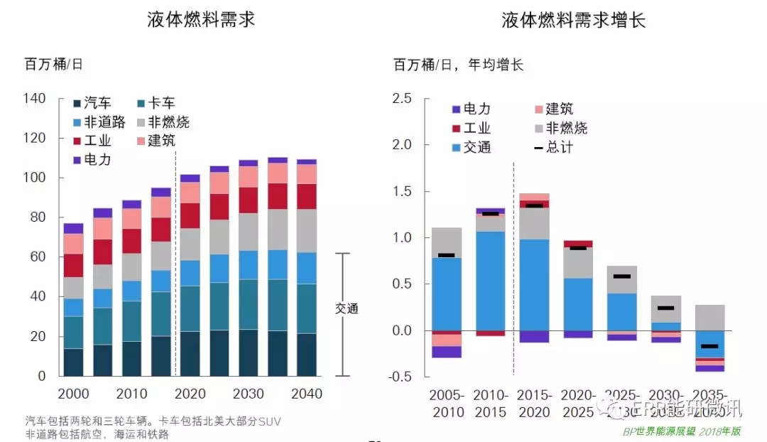 工業(yè)需求的能源占新增能源消費(fèi)量的50%左右,交通需求增速減緩。