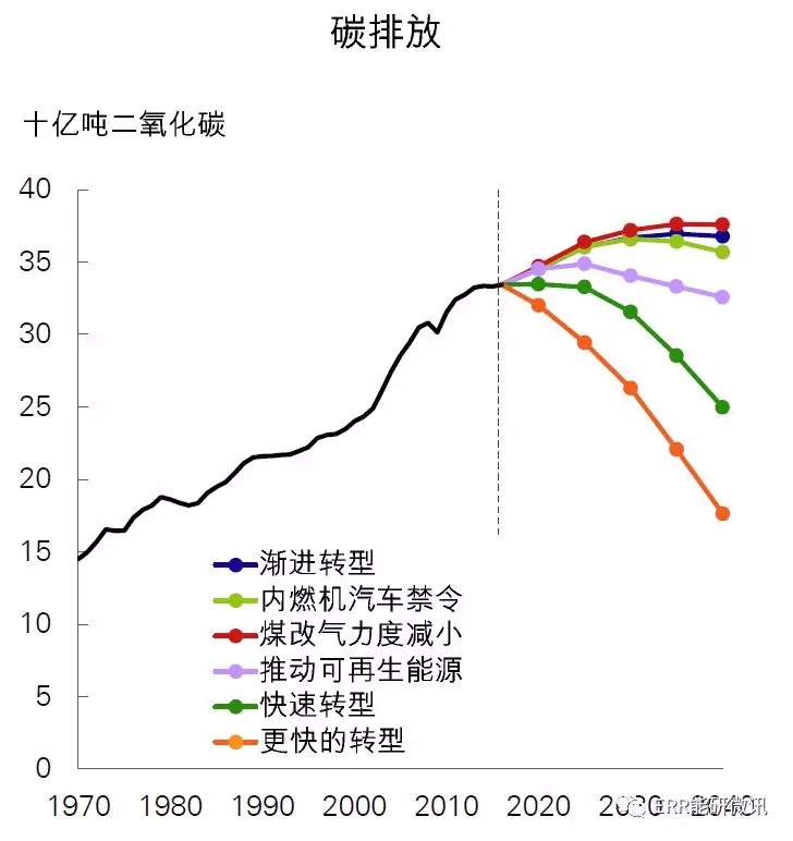 在逐漸轉(zhuǎn)型情景下,碳的排放將持續(xù)上升。