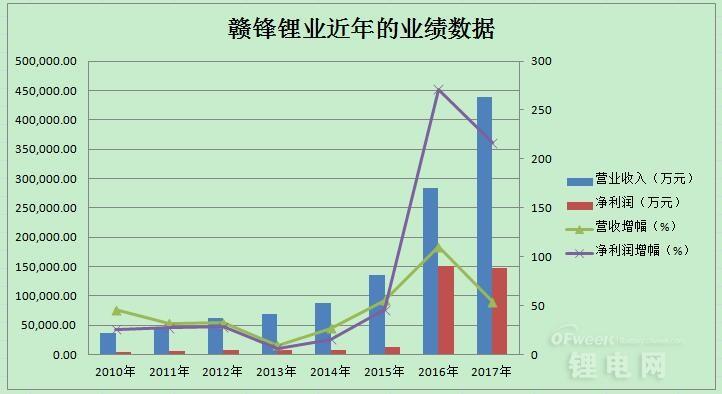 近日,贛鋒鋰業(yè)公布最新財報數(shù)據(jù)顯示,2017年實現(xiàn)營業(yè)總收入為438,344.61萬元,較上年同比增長54.12%,實現(xiàn)歸屬于上市公司股東的凈利潤為146,907.81萬元,較上年同比增長216.36%,公司總資產(chǎn)由2016年的38.09億元增加至2017年的80億元,增長率為110.02%;凈資產(chǎn)由2016年的24.88億元增加至2017年的40.37億元,增長率為62.25%。