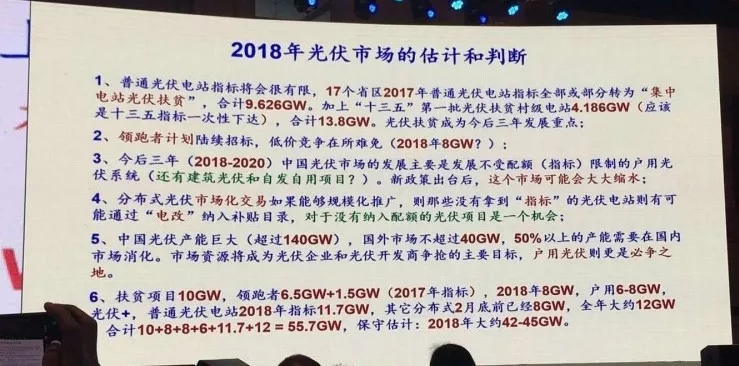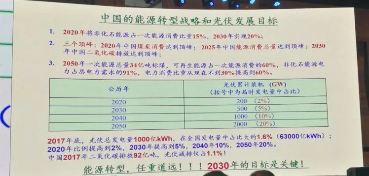 中國儲能網(wǎng)訊:4月13日,國家發(fā)改委能源研究所研究員、中國可再生能源學(xué)會光伏專委會副主任王斯成在某行業(yè)會議上發(fā)表《光伏行業(yè)形勢和熱點分析》主題演講,對2018光伏市場及未來發(fā)展的一些觀點和數(shù)字,先轉(zhuǎn)載發(fā)布,值得收藏。下方為演講PPT(部分):