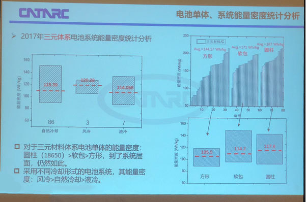王芳表示,在対市場(chǎng)車(chē)型測(cè)評(píng)中發(fā)現(xiàn),三元鋰電池單體能量密度較高,從136Wh/kg到230Wh/kg不等,平均為183Wh/kg,系統(tǒng)能量密度為115.4Wh/kg,成組率僅為63%,而磷酸鐵鋰單體能量密度平均為143.9Wh/kg,系統(tǒng)能量密度為117Wh/kg,成組率是81.5%。如此反差,一是因?yàn)榕c電池本身的安全性有關(guān),磷酸鐵鋰電池本身的安全性較高,與三元鋰電池相比,所需要的隔熱、防火、散熱、阻熱措施較少,二是因?yàn)榱姿徼F鋰電池多用于純電動(dòng)客車(chē),客車(chē)電池箱多是標(biāo)準(zhǔn)箱,設(shè)計(jì)上要比乘用車(chē)的簡(jiǎn)單,附加因素比較少。