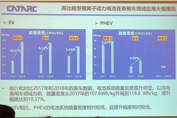 在2018年的裝車(chē)數(shù)據(jù)中,電池系統(tǒng)的能量密度較2017年有明顯提升,純電動(dòng)乘用車(chē)能量密度從107.6Wh/kg升高到118.8Wh/kg,提升幅度達(dá)到10.37%,并且受到單體能量密度的快速提升以及成組技術(shù)進(jìn)步的影響,2015-2018年電池系統(tǒng)的能量密度的提升幅度越來(lái)越大。