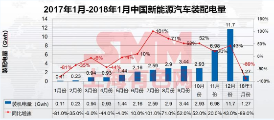2017年我國(guó)新能源汽車生產(chǎn)約81.1萬(wàn)輛,銷售77.7萬(wàn)輛。動(dòng)力電池裝機(jī)總電量約36.24GWh,同比增長(zhǎng)29%。