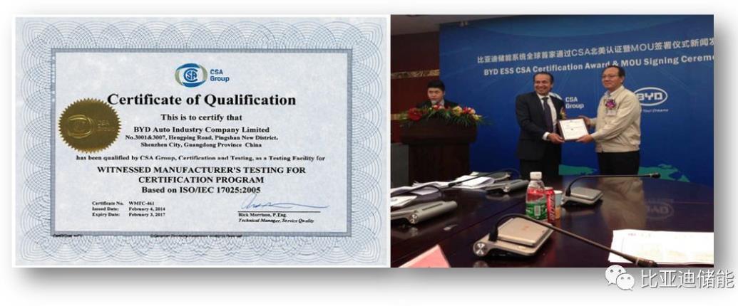 ?比亞迪儲(chǔ)能系統(tǒng)全球首家通過CSA權(quán)威認(rèn)證