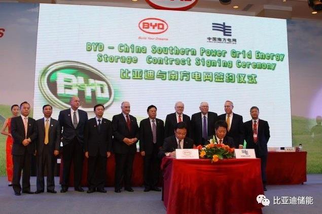 在巴菲特、芒格等貴賓的見證下,比亞迪與中國(guó)南方電網(wǎng)MW級(jí)商用電池儲(chǔ)能電站項(xiàng)目成功簽約。