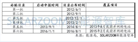 自2006年開始,國家頒布《中華人民共和國可再生能源法》和發(fā)改委頒布《可再生能源電價附加收入調(diào)配暫行辦法》等法案,明確指出可再生能源電價附加的征收是指為扶持可再生能源發(fā)展而在全國銷售電量上均攤的加價標(biāo)準(zhǔn)。而可再生能源發(fā)電站以并網(wǎng)時間為根據(jù),通過排隊納入可再生能源補(bǔ)貼目錄,從而獲得國家下發(fā)的可再生能源發(fā)電補(bǔ)貼。目前可再生能源補(bǔ)貼目錄以發(fā)至第六批,涵蓋至2015年2月底前并網(wǎng)的電站。