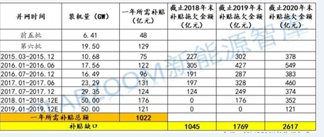 已發(fā)放補(bǔ)貼目錄內(nèi)光伏、風(fēng)電項目所需補(bǔ)貼金額
