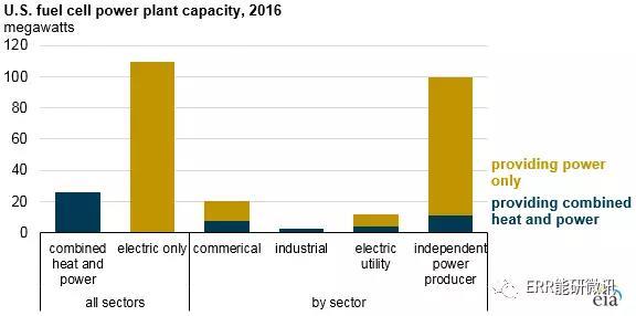 商業(yè)個(gè)工業(yè)部門(mén)燃料電池電站有時(shí)用于熱電聯(lián)產(chǎn)設(shè)施,這意味著它們?cè)谏a(chǎn)熱和蒸汽的同時(shí),額外還能夠生產(chǎn)電力。在2016年,應(yīng)用于熱電聯(lián)產(chǎn)設(shè)施的燃料電池電站為26兆瓦,其他的僅生產(chǎn)電力。