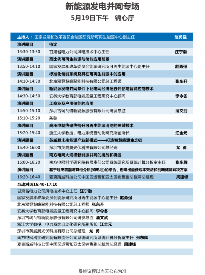 大會將分別設(shè)置儲能產(chǎn)業(yè)政策解讀、儲能電站、新能源并網(wǎng)、微電網(wǎng)、能源互聯(lián)網(wǎng)+多能互補、國際儲能、分布式光伏與儲能系統(tǒng)、儲能電池、通信儲能、氫能與燃料電池、直流配電與儲能、光儲充電站、投融資等13個專場論壇。