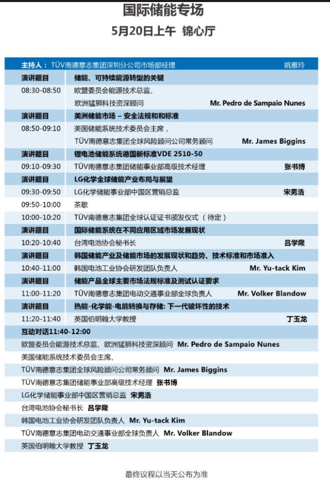 中國儲能網(wǎng)訊:為進一步探討儲能技術(shù)在安全性、經(jīng)濟性、長壽命以及資源再利用全生命周期的研究與布局,推動并完善儲能價值的市場機制建設(shè),推進先進大容量儲能系統(tǒng)技術(shù)在接入高比例可再生能源的電網(wǎng)規(guī)?;瘧?yīng)用,有力構(gòu)建市場導(dǎo)向的綠色技術(shù)創(chuàng)新體系,推進能源生產(chǎn)和消費革命,中國化學(xué)與物理電源行業(yè)協(xié)會決定聯(lián)合全國微電網(wǎng)與分布式電源并網(wǎng)標準化技術(shù)委員會、中國機電進出口商會電工產(chǎn)品分會、中國可再生能源學(xué)會光電專業(yè)委員會、中國循環(huán)經(jīng)濟協(xié)會可再生能源專業(yè)委員會、中國可再生能源學(xué)會風(fēng)能專業(yè)委員會、廈門大學(xué)中國能源政策研究院、鑒衡認證中心、中國能源研究會能源互聯(lián)網(wǎng)專業(yè)委員會、英國伯明翰大學(xué)、國家電投集團黃河上游水電開發(fā)有限責(zé)任公司、中國電建集團西北勘測設(shè)計研究院有限公司、深圳市科陸電子科技股份有限公司、北控智慧能源投資有限公司、深圳吉陽智能科技有限公司、廣東猛獅新能源科技股份有限公司、惠州億緯鋰能股份有限公司、廈門科華恒盛股份有限公司、浙江南都電源動力股份有限公司、深圳市雄韜電源科技股份有限公司、浙江超威電力有限公司、成都特隆美儲能技術(shù)有限公司、TüV南德意志集團等機構(gòu)于2018年5月19—21日在深圳市主辦“第八屆中國國際儲能大會”。