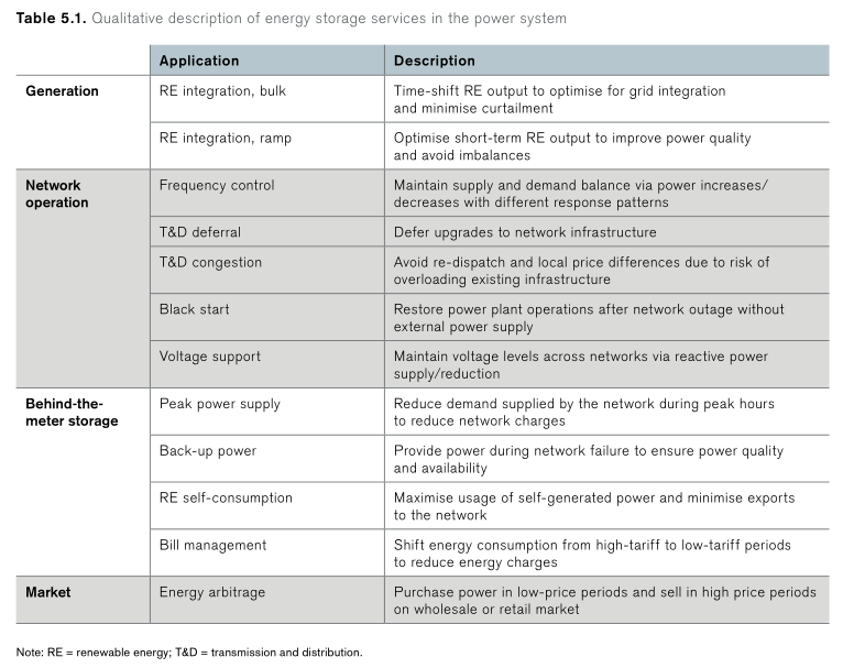 表5.1電力系統(tǒng)儲能服務(wù)的定性描述