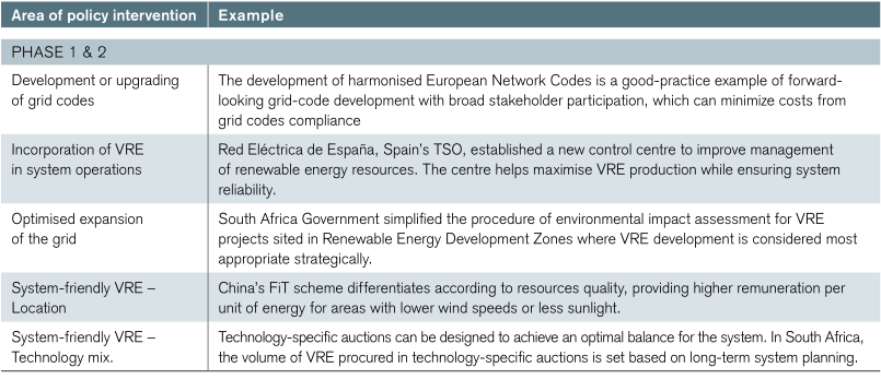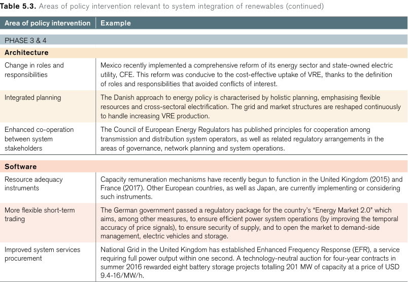 表5.3顯示按電力系統(tǒng)階段和層次分列的政策干預(yù)領(lǐng)域,并舉例說明。