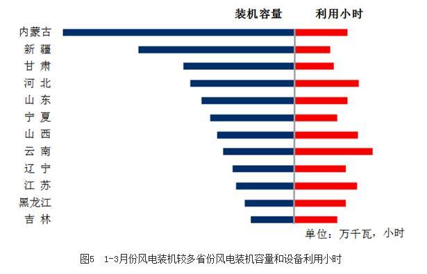 分類型看,1-3月份,全國水電設(shè)備平均利用小時為617小時,比上年同期降低6小時。在水電裝機容量超過1000萬千瓦的7個省份中,除湖南和云南同比降低279和56小時外,其余省份水電設(shè)備平均利用小時同比均有不同程度增加,其中廣西同比增加165小時;全國火電設(shè)備平均利用小時為1089小時,比上年同期增加52小時。分省份看,全國共有15個省份火電設(shè)備利用小時超過全國平均水平,其中陜西和青海超過1300小時,江西、河北、安徽和甘肅超過1200小時,云南和西藏分別僅為522和52小時。與上年同期相比,全國共有22個省份火電利用小時數(shù)同比增加,其中,福建、重慶、云南和湖南同比增加超過200小時,分別增加299、236、220和205小時,廣東、青海、四川、山西、內(nèi)蒙古、安徽、海南和甘肅同比增加超過100小時,分別增加158、144、143、137、136、118、118和109小時,而北京、山東、江蘇、新疆、貴州、天津、遼寧、黑龍江和河南同比降低,其中北京和山東同比分別降低142和100小時;全國核電設(shè)備平均利用小時1690小時,比上年同期增加59小時;全國風(fēng)電設(shè)備平均利用小時592小時,比上年同期增加124小時。
