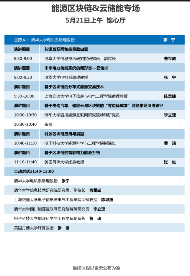 以下為能源區(qū)塊鏈與云儲能專場大會議程表。