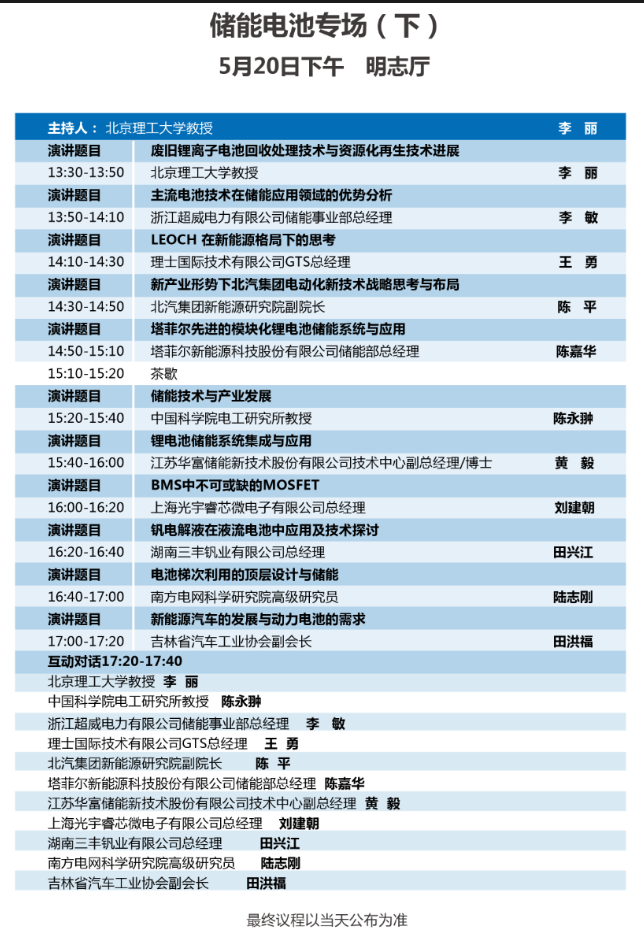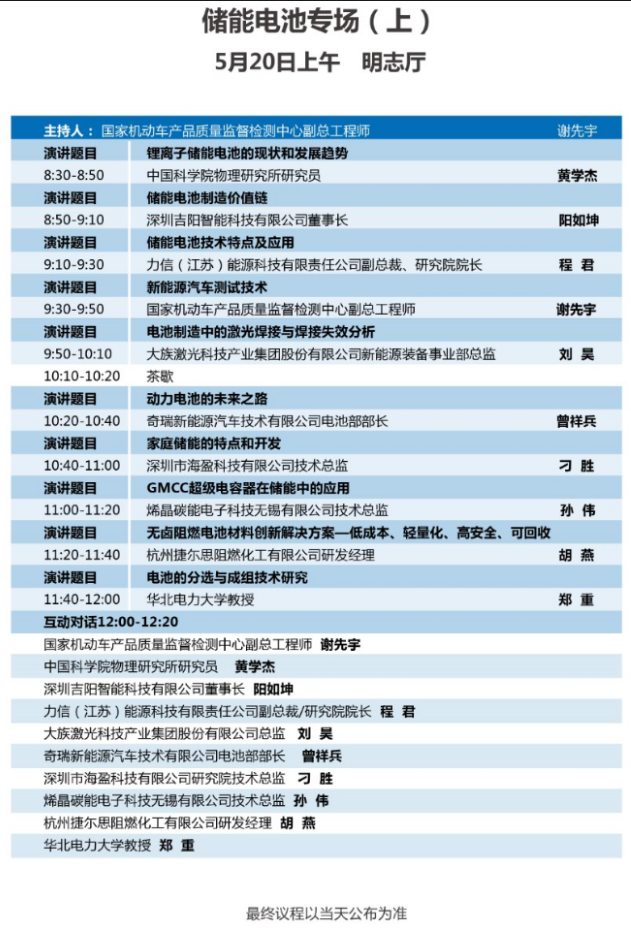 以下為儲能電池專場(二場)大會議程表。