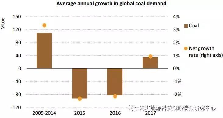 圖3 2005-2017全球煤炭需求變化態(tài)勢(單位:百萬噸)