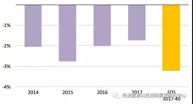 圖6 2014-2040年能效變化態(tài)勢(SDS-2017-40是IEA 可持續(xù)發(fā)展情景預測)