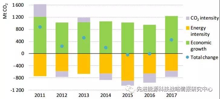 受到能源價格低位徘徊、需求增長和能效改善趨緩的影響,2017年全球能源相關的CO2排放增加了4.6億噸,達到創(chuàng)紀錄的325億噸,同比增幅1.4%。增長的排放量相當于1.7億輛汽車尾氣。盡管總體排放上漲,但各國情況不一:大多數主要經濟體排放都出現上漲,但有少數經濟體卻出現下滑情況,包括美國、英國、墨西哥和日本。美國下降幅度最大,減少2500萬噸(-0.5%)至 48.1億噸,是連續(xù)第三年下滑,主要是因為可再生能源部署增加。在英國,排放量減少15萬噸(-3.8%)至3.5億噸二氧化碳,是1960年以來的最低水平,主要原因是天然氣和可再生能源應用增加。在墨西哥,由于石油和煤炭使用量下降、電力系統(tǒng)效率提高,可再生能源發(fā)電裝機容量強勁增長以及整體天然氣使用量增加,排放量下降4%。在日本,排放量下降0.5%,因為越來越多的化石燃料發(fā)電被可再生能源和核能發(fā)電所取代。
