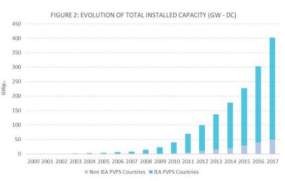 中國儲能網(wǎng)訊:近日,國際能源署光伏電力系統(tǒng)項目(IEA PVPS)發(fā)布了2018年全球光伏市場快照報告。