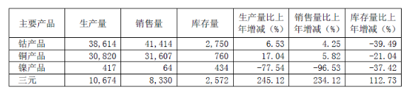 華友鈷業(yè)2017產(chǎn)銷量情況分析表: