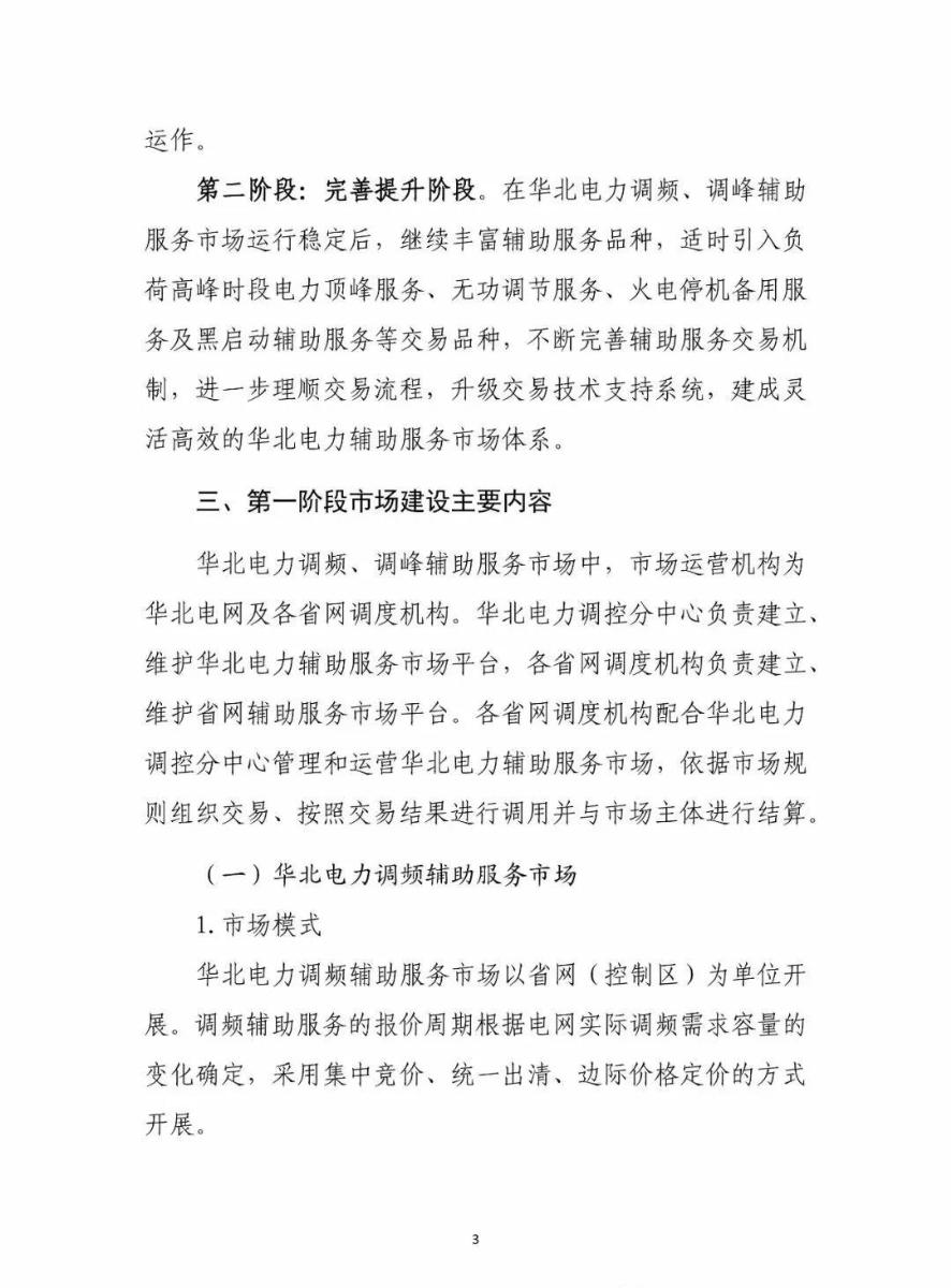 《方案》的整體思路清晰,將立足區(qū)域市場(chǎng),分階段分步驟建設(shè)華北電力輔助服務(wù)市場(chǎng),在“市場(chǎng)建設(shè)初期現(xiàn)行開展調(diào)頻輔助服務(wù)市場(chǎng)化交易,待調(diào)頻市場(chǎng)運(yùn)行穩(wěn)定后,適時(shí)引入調(diào)峰輔助服務(wù),開展華北及省網(wǎng)調(diào)峰輔助服務(wù)市場(chǎng)化交易”。