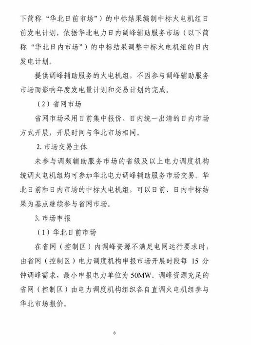 中國儲(chǔ)能網(wǎng)訊:國家能源局華北監(jiān)管局3月5日發(fā)布了《華北電力輔助服務(wù)市場(chǎng)建設(shè)方案(征求意見稿)》,并下發(fā)國網(wǎng)北京市、天津市、冀北、河北省電力有限公司,內(nèi)蒙古電力(集團(tuán))有限公司,華北區(qū)域各有關(guān)發(fā)電企業(yè)征求意見。據(jù)了解,目前已經(jīng)完成了意見征集,正在進(jìn)行細(xì)節(jié)的編寫,這標(biāo)志著華北電力輔助服務(wù)市場(chǎng)即將啟動(dòng)。