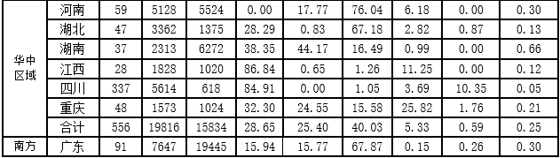 圖11華中區(qū)域分省(市)輔助服務補償分項費用情況