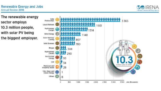 中國儲能網(wǎng)訊:根據(jù)國際可再生能源署(IRENA)的數(shù)據(jù),包括大型水電在內(nèi)的全球可再生能源領(lǐng)域的就業(yè)人數(shù)同比增長5.3%,達1030萬。