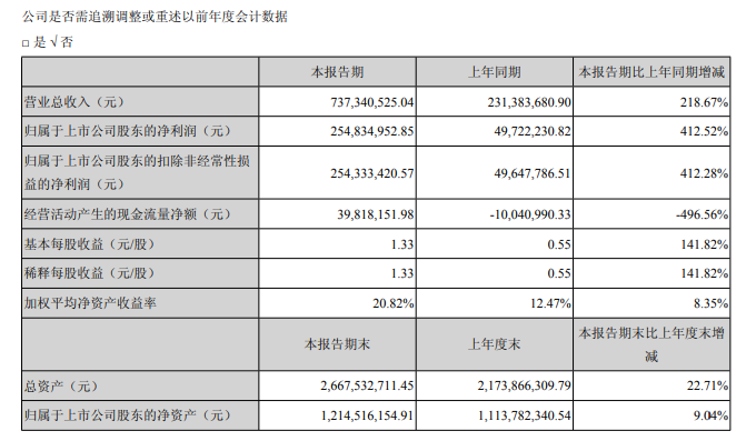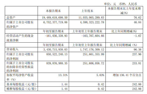 4月26日,寒銳鈷業(yè)發(fā)布了2018年第一季度業(yè)績(jī)報(bào)告。報(bào)告顯示,寒銳鈷業(yè)一季度實(shí)現(xiàn)營(yíng)業(yè)收入7.37億元,相比去年同期的2.31億元,同比增長(zhǎng)218.67%;實(shí)現(xiàn)歸屬于母公司所有者的凈利潤(rùn)2.54億元,相比去年同期的0.5億同比增加412.52%;實(shí)現(xiàn)扣除非經(jīng)常性損益后歸屬于母公司所有者的凈利潤(rùn)2.54億元,同比增加412.28%,繼續(xù)保持寒銳鈷業(yè)上市以來高速增長(zhǎng)勁頭。