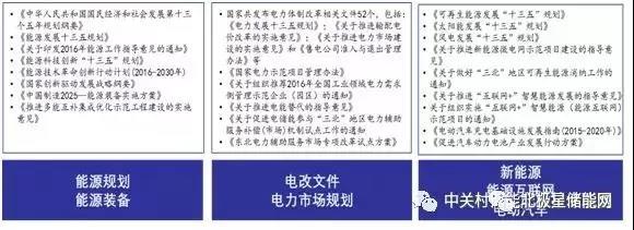 從2014年開(kāi)始,多項(xiàng)與儲(chǔ)能發(fā)展相關(guān)的政策文件逐漸進(jìn)入到我們的視線,主要分為三大類,能源規(guī)劃能源裝備類,包括《能源發(fā)展戰(zhàn)略行動(dòng)計(jì)劃(2014-2020)》、《能源發(fā)展十三五規(guī)劃》等、電力體制改革和電力市場(chǎng)規(guī)劃類,包括2015年初發(fā)布的《新一輪電力體制改革》及其配套文件、以及第三類包含促進(jìn)大規(guī)??稍偕茉聪{利用、能源互聯(lián)網(wǎng)和電動(dòng)汽車推廣發(fā)展的多種政策。文件中都把發(fā)展和利用儲(chǔ)能作為重要工作內(nèi)容,政策的發(fā)布都為提高儲(chǔ)能的認(rèn)知度,確立儲(chǔ)能發(fā)展的重要性做出了貢獻(xiàn)。