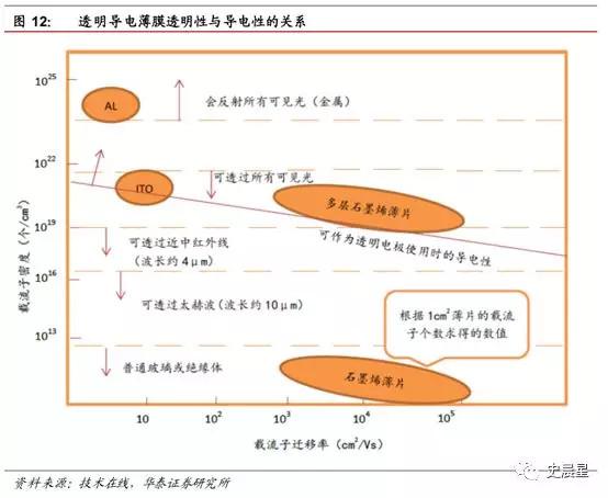 單層石墨烯對(duì)光的吸收率僅為 2.3%,且對(duì)任何波長都有效,打破了目前常用半導(dǎo)體化合物如砷化鎵等的吸收帶僅在可見光和近紅外端的限制,可制備透明導(dǎo)電薄膜,替代 ITO,用于觸摸面板、柔性液晶面板、太陽能電池及 LED 照明等。
