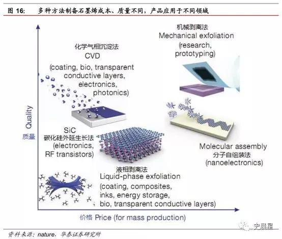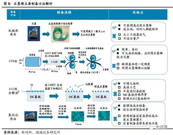 在制備技術(shù)層面,氧化還原法與物理剝離法常被用作制備石墨烯粉體,而化學(xué)氣相沉積法與外延生長法常被用作制備石墨烯薄膜。
