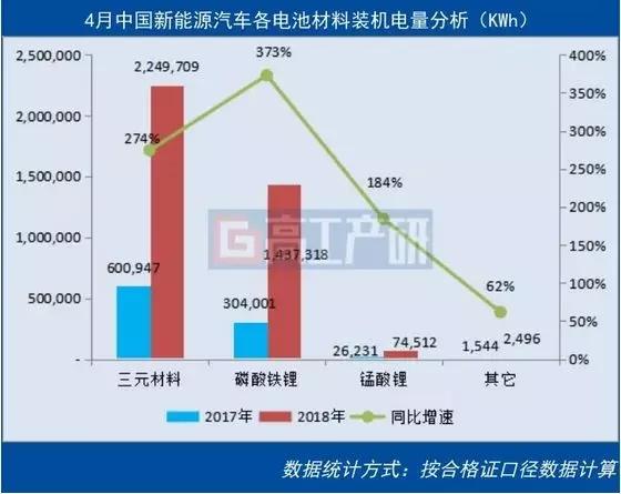 中國(guó)儲(chǔ)能網(wǎng)訊:高工產(chǎn)業(yè)研究院(GGII)最新數(shù)據(jù)統(tǒng)計(jì)顯示,2018年4月我國(guó)新能源汽車生產(chǎn)約8.7萬(wàn)輛,同比增長(zhǎng)148%,動(dòng)力電池裝機(jī)總電量約3.76GWh,同比增長(zhǎng)304%。