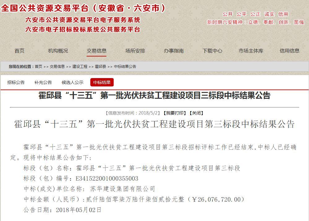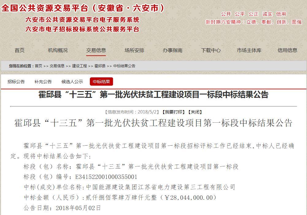 原標(biāo)題:霍邱縣“十三五”第一批光伏扶貧工程建設(shè)項目中標(biāo)結(jié)果公告