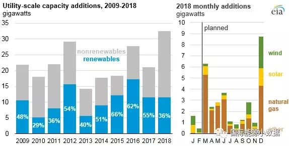 具體來(lái)說(shuō),2018年新增風(fēng)電容量將達(dá)5吉瓦(其中2吉瓦集中在德克薩斯州),光伏新增4吉瓦(其中一半在加利福尼亞、北卡羅來(lái)納、德克薩斯州)。